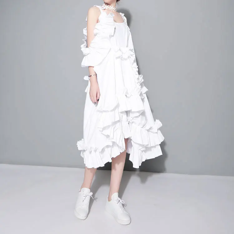 Cheap Price 2016 New Women Flouncing Irregular Multi-level Splicing Harness Dress Cascading Ruffle Dress Black White Fashion Brand Dress,Price : US $32